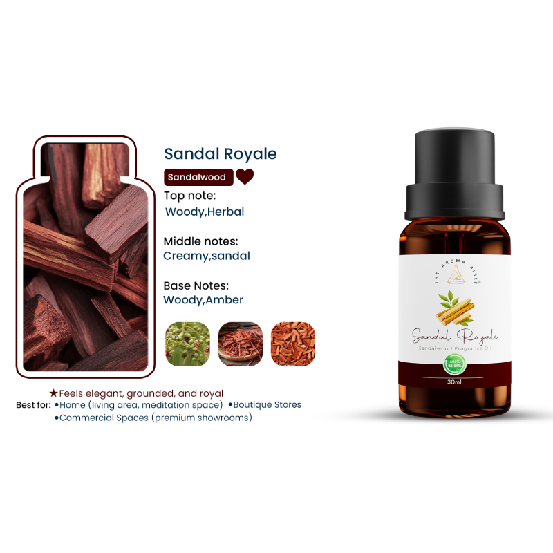 Sandal Royale brings a touch of luxury and tranquility to your space with its timeless, meditative sandalwood scent. Renowned for its warm, woody richness and calming effects, this diffuser fragrance oil is crafted to comfort, center, and ground you. It features a smooth blend of herbal top notes, a creamy sandalwood heart, and a lingering amber base, creating a serene atmosphere that feels almost sacred, perfect for deep concentration, spiritual practices, or simply unwinding after a long day.